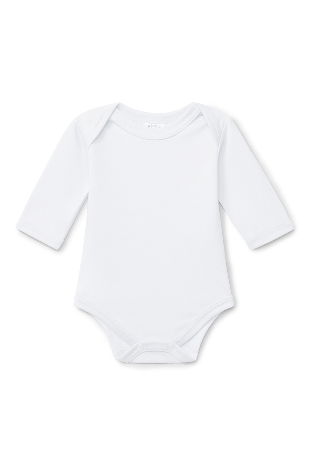 Pack of 2 Gloop long-sleeved bodysuits in ultra-soft organic cotton jersey. The snap fasteners at the crotch ensure practicality and ease of changing. Made from 100% organic cotton, it offers the soft, breathable feel baby’s sensitive skin needs. Made in Portugal. Sizes: 3-6 months (62cm-68cm) | 6-9 months (68cm-74cm).
