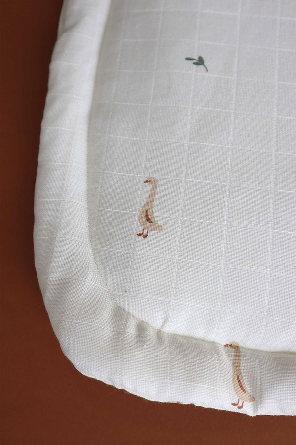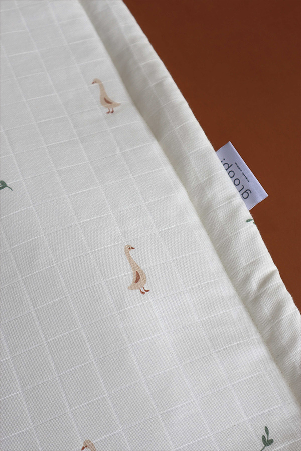 Made from soft and breathable 100% organic cotton diaper fabric, the topponcino is perfect to use in your lap, in bed, in the stroller or during breastfeeding.