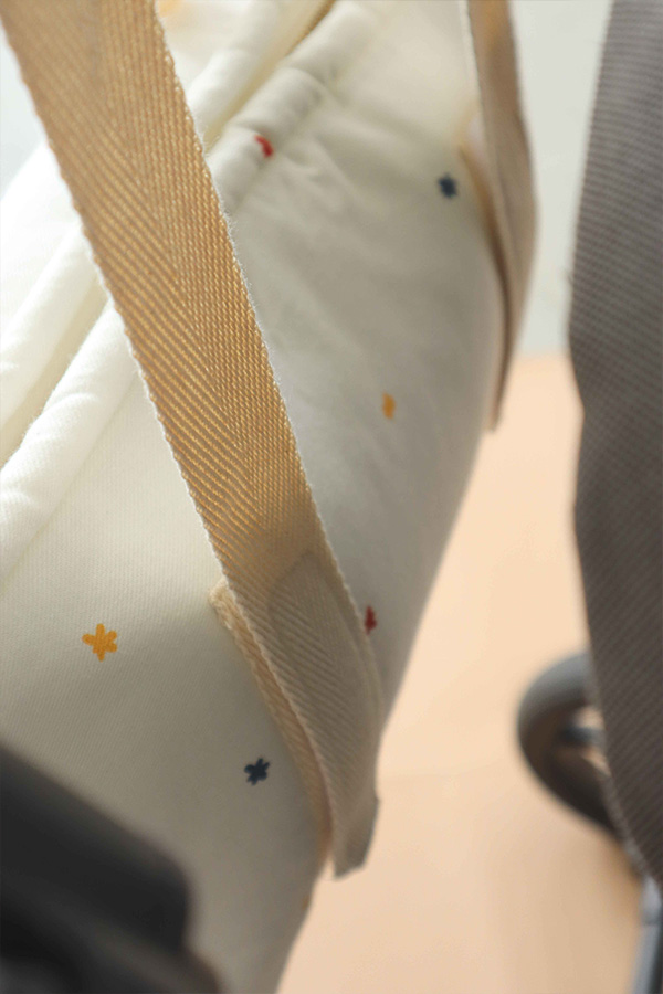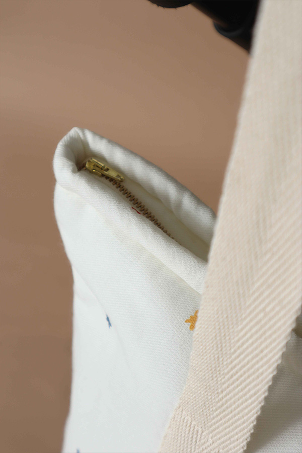 Hecho con 100% algodón orgánico certificado, este bolso organizador combina sostenibilidad, calidad y comodidad. El forro impermeable protege el interior y facilita la limpieza.