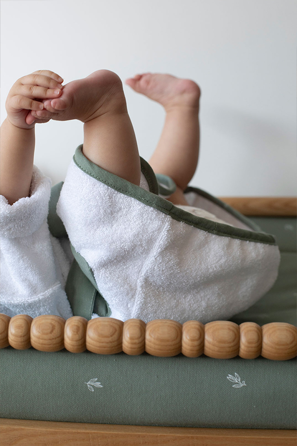 Elegante y práctico el Albornoz gloop! está destinado a evitar que el bebé sienta frío después del baño. Colocado justo después del baño el Albornoz gloop! Se seca y abraza al bebé con su material súper absorbente. 100% algodón orgánico y fabricado en Portugal Tamaño: 55x86cm