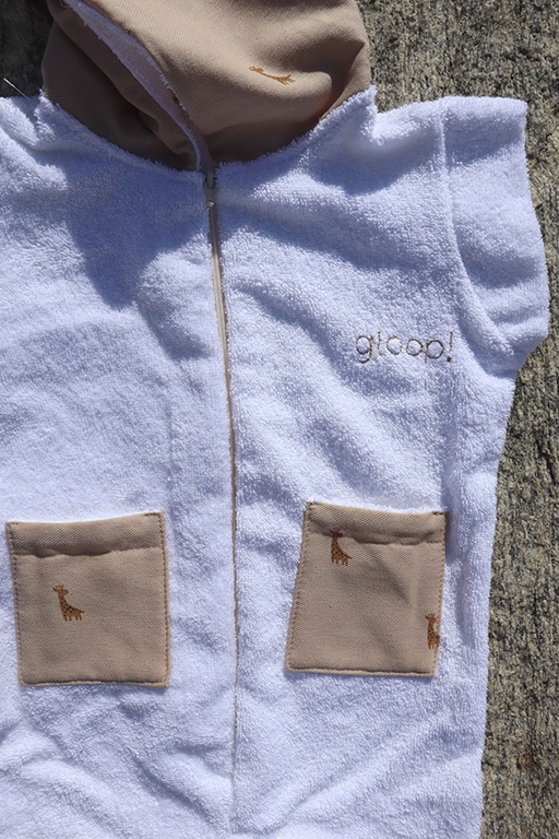 Mono corto de playa de algodón 100% orgánico con capucha para bebés y niños de hasta 7 años. Este pelele de manga y pierna corta está confeccionado en tejido de rizo absorbente y es fácil de poner gracias a su cremallera frontal. La capucha ayuda a secar rápidamente el cabello y mantiene al bebé o niño abrigado en la playa.