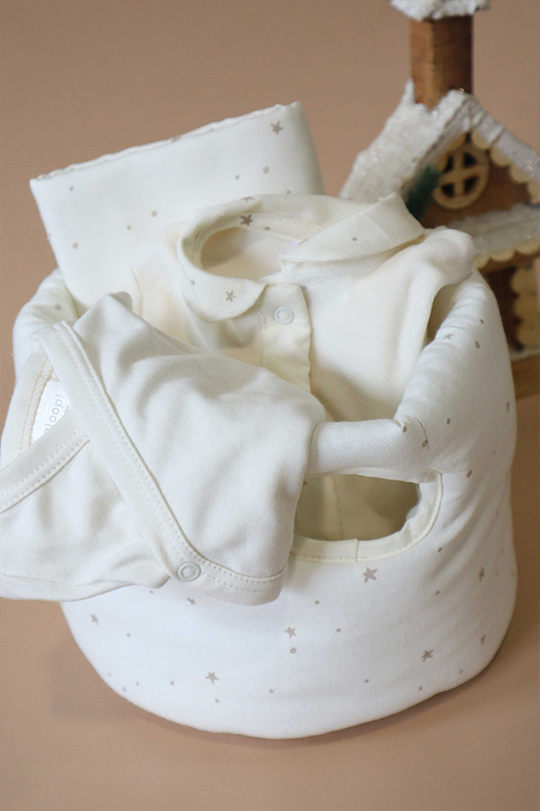 El Kit de Nursery es la opción perfecta para quienes buscan calidad y comodidad al cambiar a su bebé. Este conjunto incluye una cesta almacenamiento, un dispensador de toallitas, una manta (0-3 meses), un babygrow (1-3 meses) y un body cruzado (1-3 meses), todos confeccionados en algodón 100% orgánico, garantizando un tacto suave y natural para la delicada piel del bebé.