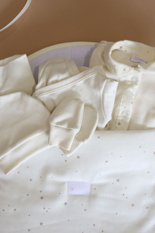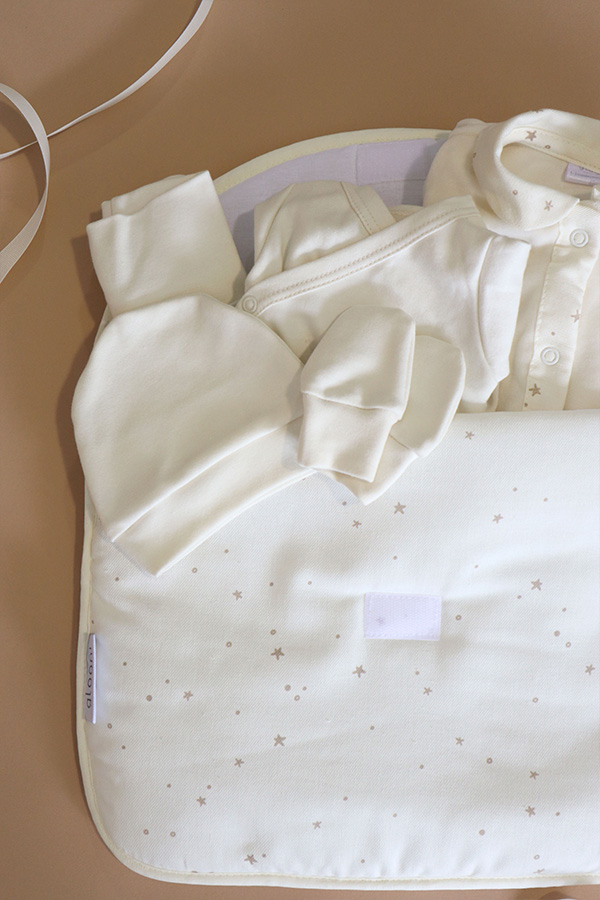 El kit para Recién nacido es la opción perfecta para quienes buscan calidad y comodidad en los primeros cuidados de su bebé. Este conjunto incluye 1 bolsa de tela, 1 babygrow 1-3 meses, 1 pantalones interiores 1-3 meses, 1 body cruzado 1-3 meses, 1 gorro y guantes, todos elaborados con algodón 100% orgánico, lo que garantiza un tacto suave y natural para la delicada piel del bebé.