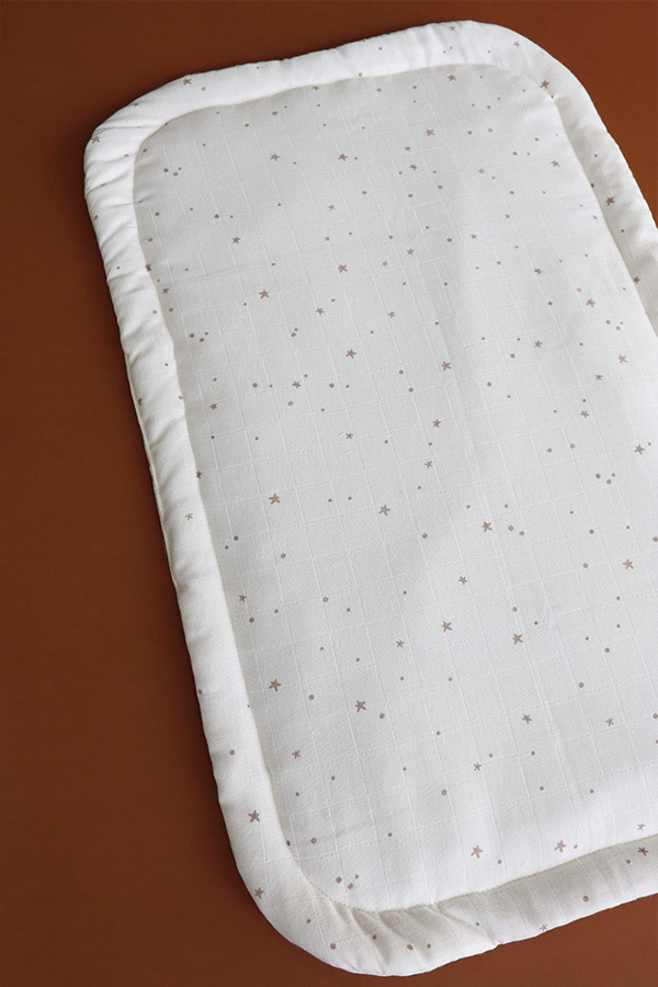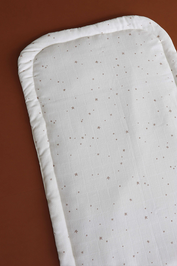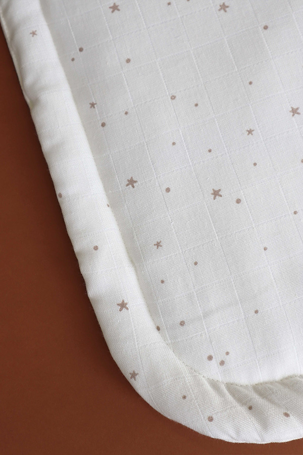 Confeccionada con suave y transpirable tela de pañal de algodón 100% orgánico, el Topponcino es perfecto para usar en tu regazo, en la cama, en el cochecito o durante la lactancia.