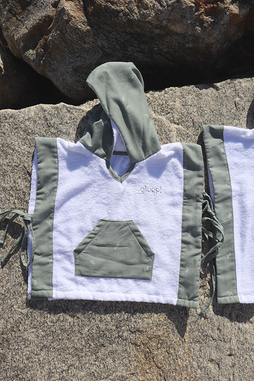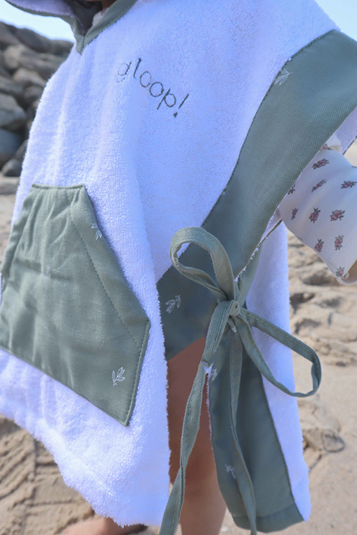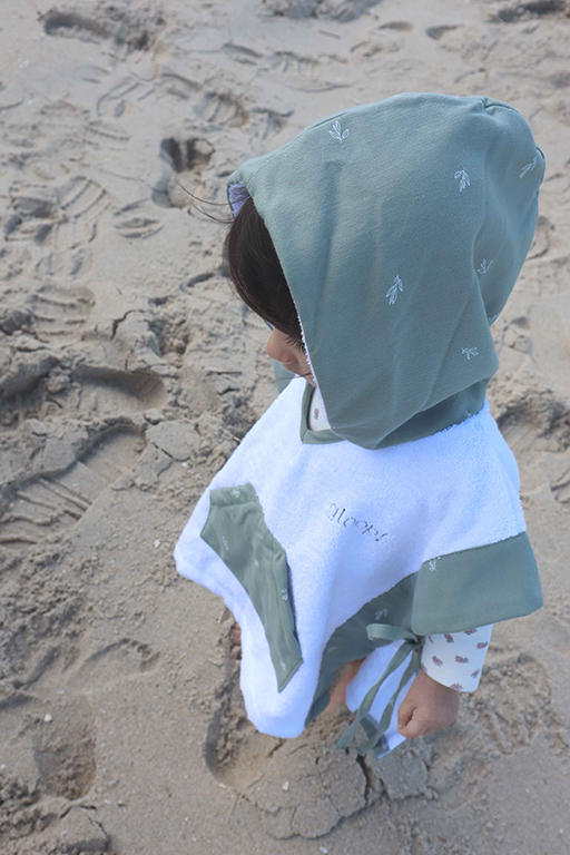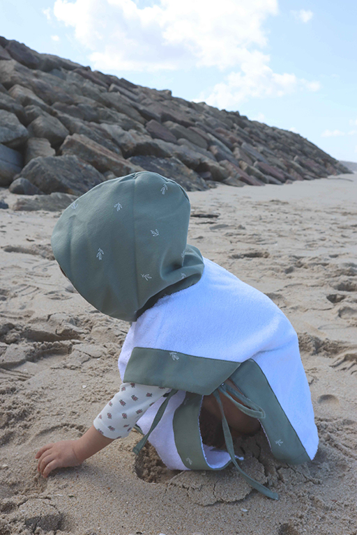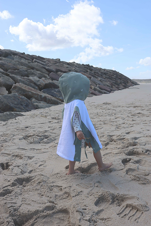 Poncho de praia em 100% algodão orgânico com carapuço para bebé até 5 anos. Feito em tecido turco absorvente, é fácil de vestir e possui um carapuço que ajuda a secar rapidamente o cabelo e a manter o bebé aconchegado na praia.
