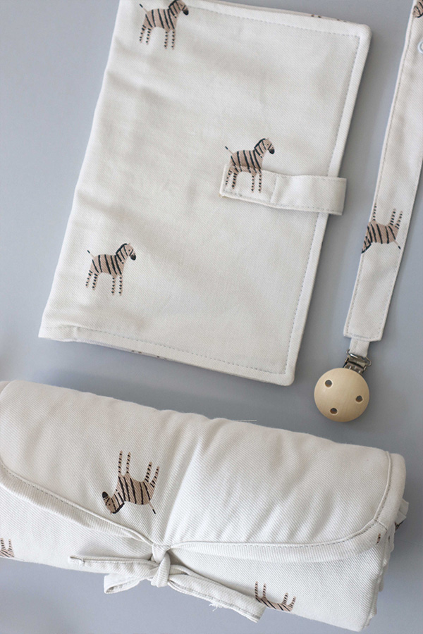O Kit passeio é a escolha perfeita para quem procura qualidade e conforto na hora de passear o seu bebé. Este conjunto inclui 1 muda fraldas portátil, 1 porta toalhitas, 1 porta-chupetas em tecido, todos confeccionados em 100% algodão orgânico, garantindo um toque suave e natural na pele sensível do bebé.