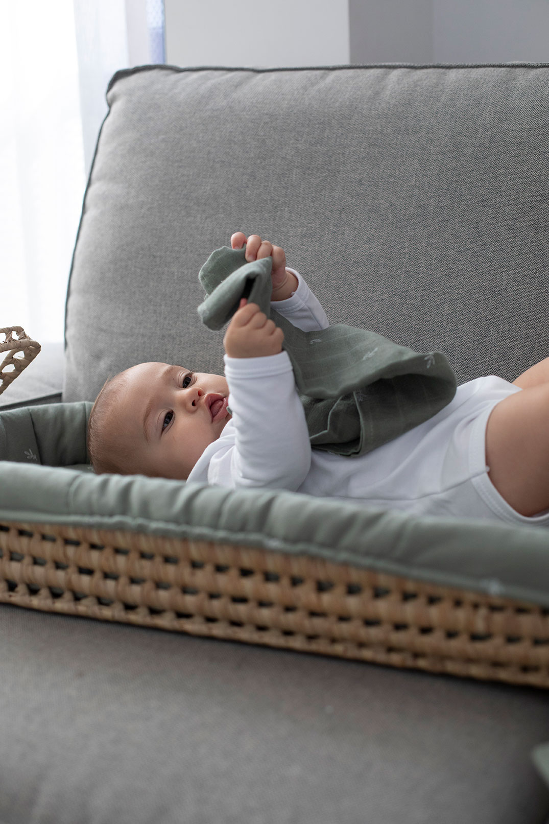 A cesta muda fraldas de verga para bebé gloop! com colchão é a solução perfeita para tornar a muda da fralda mais prática e confortável. A cesta feita à mão em verga natural, combina funcionalidade, estética e sustentabilidade, adaptando-se facilmente a qualquer quarto de bebé. O seu design natural e intemporal encaixa na perfeição em ambientes modernos, boho ou clássicos.