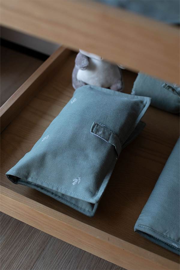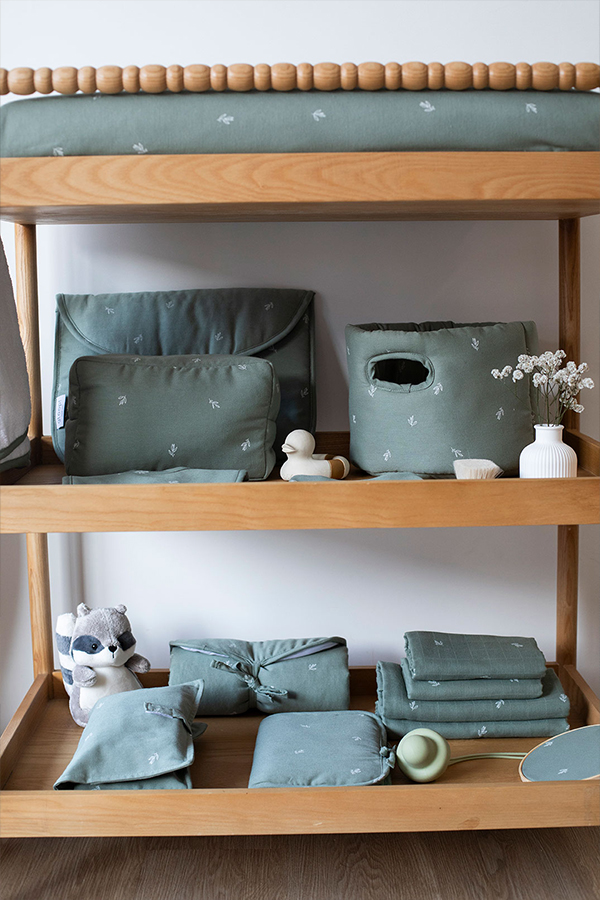 Feito com tecido 100% algodão orgânico, o porta toalhitas é suave, resistente e seguro para a pele do bebé.